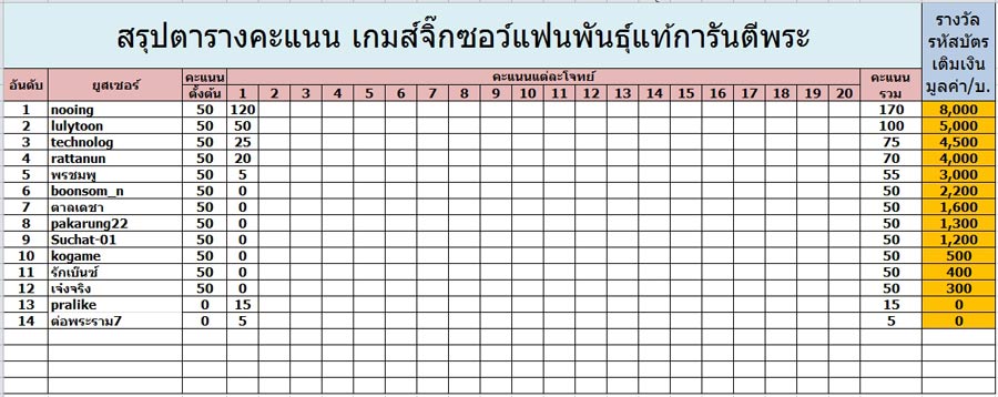 ทิ้งห่างเต็งหนึ่งท่าน lulytoon ซึ่งเก็บได้เพียง 50 คะแนน
