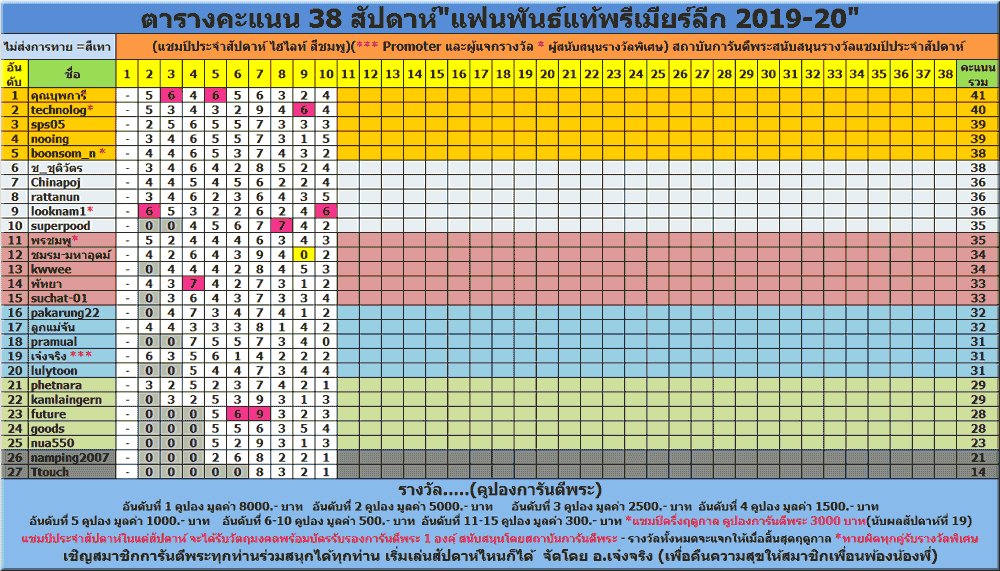 แล้วนำคะแนนพิเศษนี้ไปรวมกับการทายผลปกติ....ในแต่ละสัปดาห์