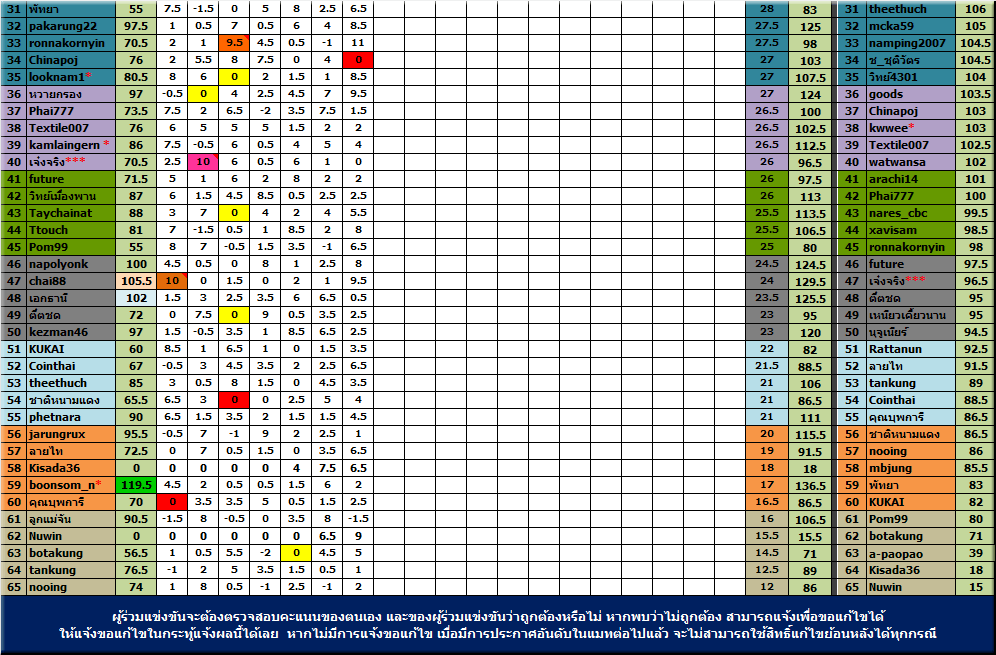 **และขอสงวนสิทธิ์ หากผมได้ส่งของรางวัลให้แล้ว หากมีการโต้แย้งคะแนนซึ่งอาจมีการผิดพลาด แต่ยังอยู่ในช่วงที่สามารถแก้ไขได้ตามกฏ ผู้รับรางวัลไปแล้วต้องส่งรางวัลดังกล่าวกลับคืนให้ผู้ที่มีคะแนนแก้ไขถูกต้องแล้ว เป็นผู้ได้รับรางวัลที่ถูกต้องต่อไป