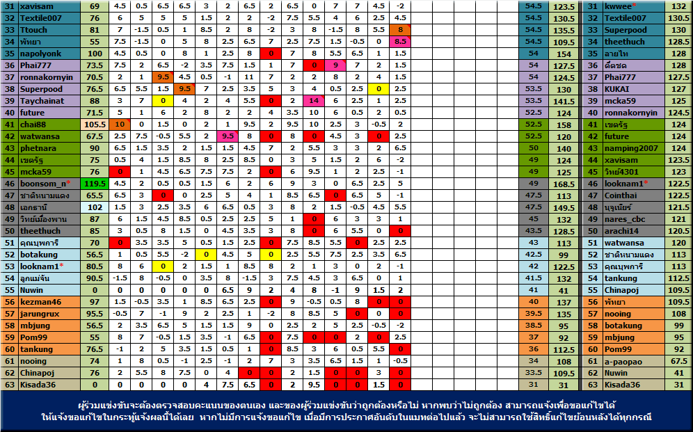 ****สมาชิกผู้ร่วมกิจกรรมทุกท่าน ต้องเป็นผู้ร่วมตรวจสอบคะแนนต่างๆด้วยนะครับ ทุกคะแนนหากมีการประกาศผลในสัปดาห์ต่อไปแล้ว