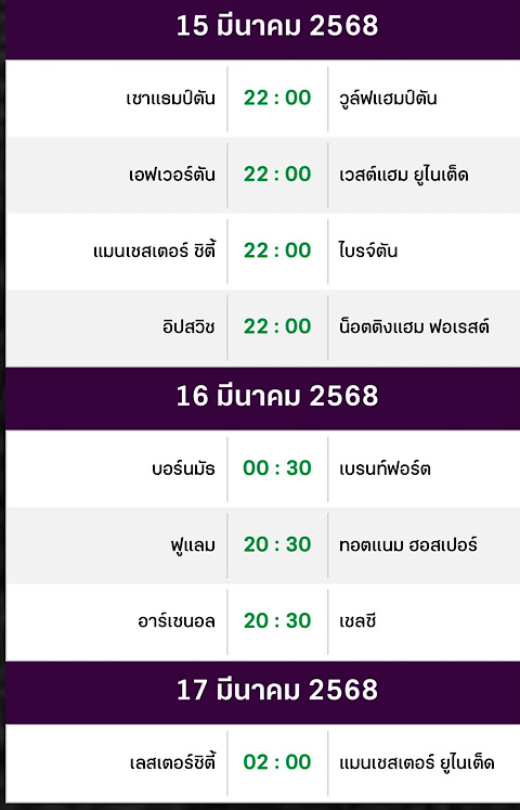 - คู่ที่ 1 เริ่มแข่งขันเวลา 22.00 น. วันที่ 15/3/68