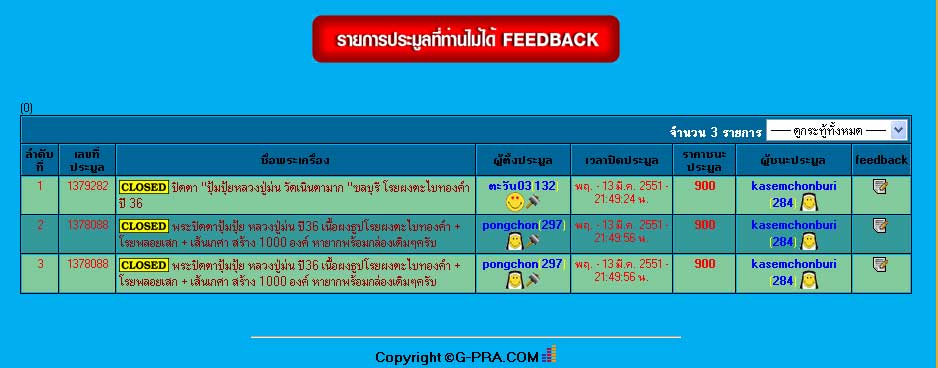 กดเปิด รายการประมูลที่ท่านไม่ได้ feedback