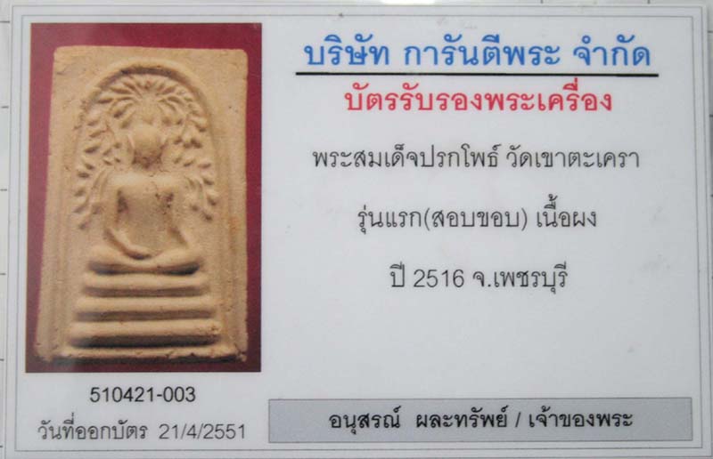 ครั้งที่ 3. ออกบัตรรับรอง พระสมเด็จปรกโพธ์ วัดเขาตะเครา รุ่นแรก (สองขอบ) เนื้อผง ตกลงเป็นปีไหนกันแน่ครับ เอาให้แน่ๆนะครับ และนามสกุลผมน่ะเปลี่ยนให้ทำไมผมไม่เอานะของเดิมดีอยู่แล้ว