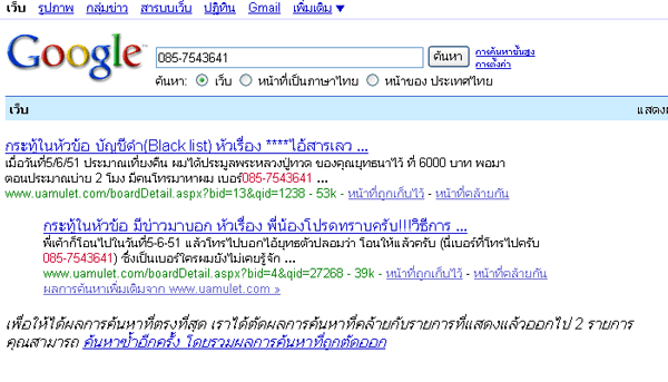 ถ้าหากไม่พบก็ลองหลายๆครั้ง ตามตัวอย่าง ใส่เบอร์โทรศัพท์ลงไป ครั้งแรกใส่ 0857543641 ค้นหาไม่พบ ก็ใส่ขีดเพิ่มเข้าไป เป็น 085-7543641