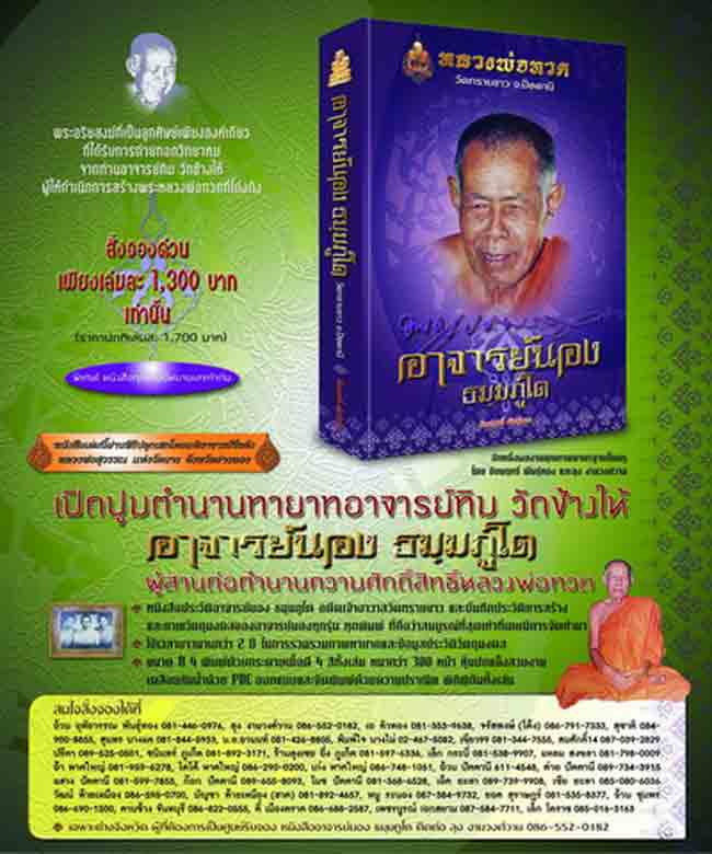 หนังสือ รวมเล่มอ.นอง จัดพิมพ์โดย ชัยนฤทธิ์ พันธุ์ทอง และลุงงามวงศ์วาน คัดสรร ภาพพระสวยๆๆแท้มาตราฐานที่จัดสร้างโดยอ.นองวัดทรายขาว หนา400 หน้า ทุกเล่มมีเลข พิมพ์จำนวน 5000เล่มเท่านั้น และได้นำเข้าพิธี เสกโดยหลวงพ่อ สุวรรณ วัดยาง อ่างทอง รับหนังสือไม่เกินตุลาคม 2551 |