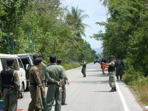ผมเป็นทหารเกณฑ์ ที่ได้มารับใช้ชาติที่ภาคใต้ วันนี้มีเรื่องอยากเล่าให้เพื่อนๆฟังกัน เพราะวันนี้ หน่วยที่ผมสังกัดอยู่ ออกลาดตระเวณตามปกติ แต่ที่ไม่ปกติคือ มีทหารคนหนึ่งบังเอิญเห็นถังแก๊ซขนาดปิคนิคใบนึง วางอยู่ข้างทาง มันน่าสงสัยมากๆ ขอกำลังสนับสนุน จากหน่วยอื่นๆ ก็ มีตำรวจพื้นที่ กับ ชุดเก็บกู้วัตถุระเบิด ของตชด. พอถึงเวลาประมาณ 11 โมงเช้า เจ้าหน้าที่ตำรวจกะ ทหารก็รวมกำลังกันเสร็จแล้วเข้าตรวจสอบพื้นที่ เมื่อตรวจสอบพื้นที่จนแน่ใจแล้วว่า ไม่มีประชาชนอยู่โดยรอบ ซึ่งอาจเป็นอันตรายได้ ก็ ถึงคิวพระเอกของวันออกโรง เป็นพี่ตชด.คนนึง ในรุปจะเห็นพี่เขาใส่ชุดเกราะกันระเบิด (ชุดเกราะอันเนี้ย พวกเราเรียกกันว่า Bomb suit) แล้วก็ เดินเข้าไปพร้อมกะไม้ยาวอันนึง เพื่อเอาเชือกไปผูกกะถังแก๊ซ คำว่าไม้ยาวนี่ไม่ได้ยาวมากเลยนะคับ ยาวแค่ 5-6เมตรเอง ถ้ามันเกิดระเบิดขึ้นมาจิงๆก็ ตายอะเพราะแถวนี้ระเบิดกันที รถทหารหนักตันกว่าๆ ลอยสูงจากพื้นได้เกือบครึ่งของเสาไฟฟ้าเลยอะ พอผูกเสร็จก็ช่วยกันดึงเอาถังแก๊ซเจ้ากรรมนั่นขึ้นมาเพื่อทำการตรวจสอบ วันนี้เดชบุญที่มันเป็นแค่การสร้างสถานการณ์ ทำให้ไม่มีคนได้รับบาดเจ็บ แต่วันนี้ก็วุ่นกันมากพอดู ตำรวจ-ทหาร ราวครึ่งร้อย วุ่นวายกับถังแก๊ซที่อาจมีระเบิดอยู่ข้างใน แต่กว่าจะรู้ว่าระเบิดปลอมก็เหนื่อยกันมากๆ แต่ถึงจะเป็นระเบิดปลอมก็ไม่มีใครบ่นอะไรเพราะกันไว้ก่อนดีกว่ามาตามเก็บชิ้นส่วนเพื่อนร่วมอาชีพทีหลัง ใช่มะคับ |
