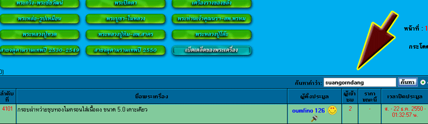 อันดับแรก ในทุกหน้ากระดานประมูลจะมีช่องสำหรับค้นหา ถ้าเราสนใจพระเครื่อง หรือรายการใด เราลองตรวจดูสักนิดครับว่า username ที่เรากำลังจะประมูลของเขานั้น มีประวัติการทำธุรกรรมในกระดานนั้นๆ เป็นอย่างไรบ้าง ข้อดีคือ เราจะได้รู้ว่าเขาถนัด หรือเล่นหาอยู่สายไหน ตรงนี้ผมว่าเป็นความน่าเชื่อถือ "ส่วนหนึ่ง" เพราะไม่มีใครเก่งทุกสายแน่นอน ประเภทมีพระหลักหลายรายการ หลายพื้นที่ อันนี้ขอให้ชั่งใจไว้นิดครับ แต่ไม่ได้หมายความว่าเป็นไปไม่ได้น่ะครับ(ความน่าจะเป็นจะน้อย นานๆครั้งได้ครับ) |