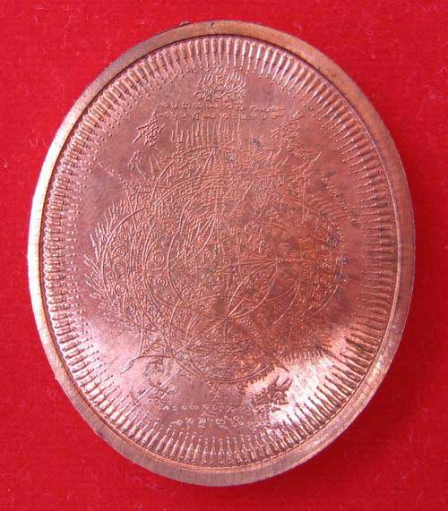 พระพักตร์ชัดเจนสง่างามมาก ขอบเหรียญด้านหน้าวงในเป็นยันต์รูปกงจัตรหมุนติดต่อกันไป