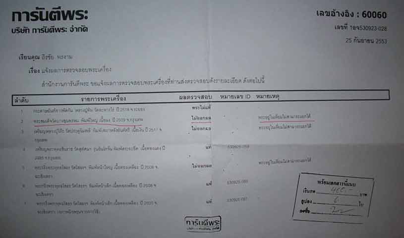 และได้ถ่ายหลักฐานใบแจ้งผลของจี-พระ