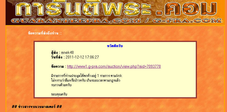 ***สรุปให้ถึงวันศุกร์(16/12/2554)นี้ ไม่โอนเงินมาถือว่าผมยกเลิกรายการนี้ครับ และขออนุญาติให้คำติคุณนะครับ เพราะแค่แจ้งกลับมานิดนึงว่าจะเอาหรือไม่เอา ยังไม่ติดต่อมาเลย ไม่น่าเชื่อจะขาดการติดต่อ