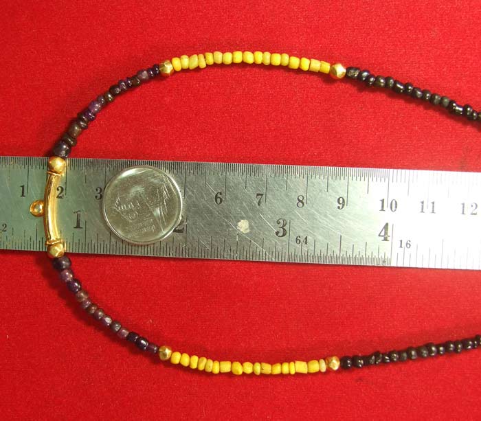ความยาว 17 นิ้ว ร้อย2วันเสร็จพอดีครับ มีสีม่วง เหลือง สีดำ สีอิฐ สีน้ำเงินกษัตย์ ตัวกลางและตะของานทองสั่งทำ เม็ดทองหุ้มครั่ง 10 เม็ด สำหรับความเชื่อแต่ละสีมีดังนี้ครับ สีม่วง คนเมตาสงสาร นำทรัพย์สินมาให้ อุปถัมภ์คอยช่วยเหลือ ส่งเสริมให้สูงส่งยิ่งขึ้น /สีเหลือง มีสเน่ห์ เมตามหานิยม คนรักใคร่ไม่เกลียดชัง /สีดำ กันผีสาง นำโชค /สีอิฐ ป้องกันเขี้ยวงา แมลงสัตว์กัดต่อย /น้ำเงินกษัตย์ มีอำนาจวาสนา ส่งเสริมวาสนาให้สูงขึ้น นำโชค  |