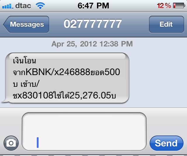 โอนมา 25/4/55 แล้วไม่ได้โทรแจ้งรายละเอียด ถ้าเป็นรายการจองพระ (อาจเป็นลูกค้าภายนอก) ถ้าพระออกแล้วผมไม่มีพระในรุ่นนั้น ขออนุญาติโอนเงินคืนนะครับ ให้ติดต่อมาด้วยนะครับ