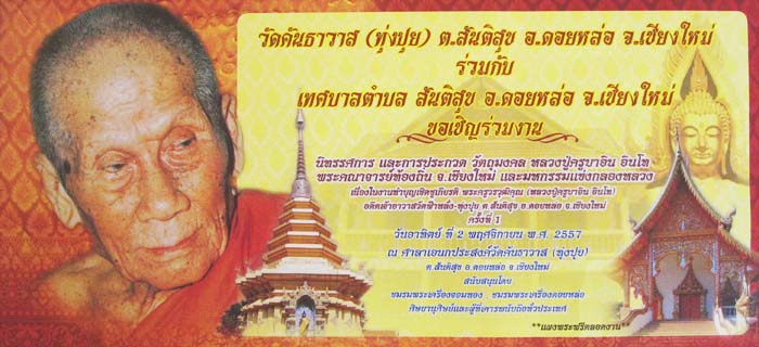 วัดคันธาวาส (ทุ่งปุย) ต.สันติสุข อ.ดอยหล่อ จ.เชียงใหม่ ร่วมกับ เทศบาลตำบลสันติสุข อ.ดอยหล่อ จ.เชียงใหม่ ขอเชิญร่วมงาน