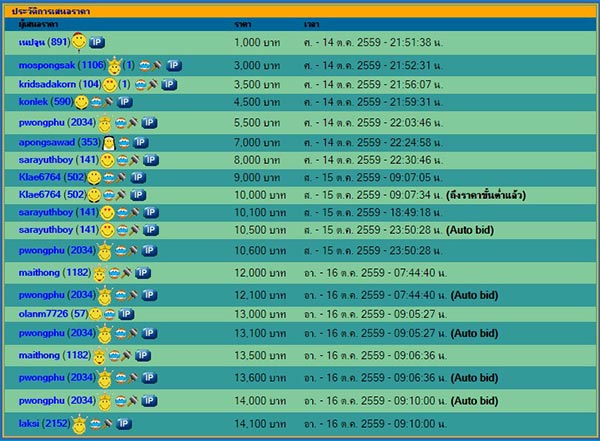 พวกสู้ราคาดีๆมูลค่าสูงๆแซ่งหน้าคนอื่น ปิดประมูลชนะเมื่อไหล่แจ้งออกเจ้าพระของออกบัตรใหม่เมื่อนั้น.. ผมเจอมากับตัวหลายครั้งหลายหน พอส่งไปออกบัตรใหม่ตามใจผู้ชนะประมูลผลประการตรวจสอบผ่าน รีบแจ้งโอนเงินค่าพระที่ชนะประมูล+ออกบัตร100บาท แท้ที่จริงมันเป็นยังไงนั้นทุกท่านทราบดี นั้นเป็นเพราะเหลี่ยมประสบการณ์ผู้ชนะFBสู้งๆเค้าใช้กัน. ยิ่งสมาชิกเราๆท่านๆนิ่งพวกคนกลุ่มนี้ก็ได้ใจ เพื่อจุดประสงค์เอารัดเอาเปรียบ ซึ่งในบางครั้งรับพระไปแล้วต่อให้พระแท้ตรงตามบัตรและข้อมูลในกระดาน แต่ไม่พอใจก็ขอคืนด้วยสาเหตุต่างๆนาๆ ยิ่งพระราคาตกหรือชนะผิดราคานี้รีบคืนด่วน (ค่าออกบัตร600บาทและระยะเวลาที่เสียไปมันไม่สนุกกับคนหาเช้ากินค่ำ) เป็นไปได้หน้าจะออกกฏให้กับผู้ตั้งประมูลบ่างนะครับ (ภาพประกอบตัวอย่าง) |