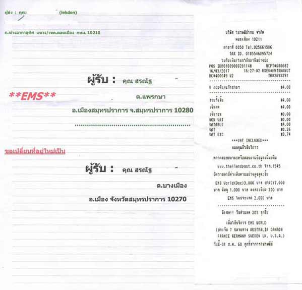 รอรับตามทีอยู่ใหม่ 10270 ใช้เวลาน่าจะประมาณ2 วันทำการ |