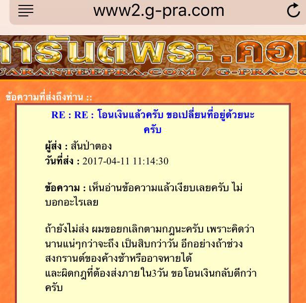 พระกว่าจะถึงไปตั้ง15วัน ส่งกลับ ถึงแล้วเกิน3วัน ไม่ยอมโอนคืน