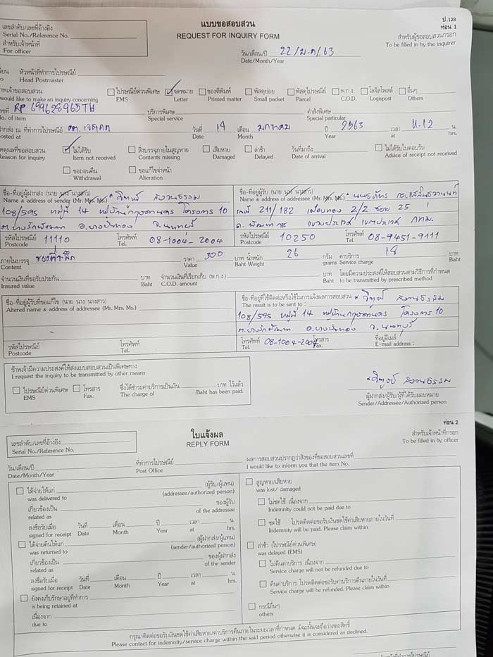 พนักงานไปรษณีย์แจ้งว่าจะได้รับคำตอบอย่างเป็นทางการภายใน 10 วัน ครับ