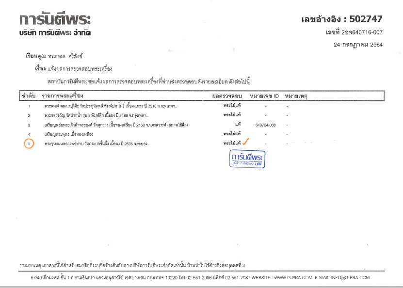 หัวข้อกระทู้ : แจ้งใบรายผลตรวจสอบพระขุนแผนหลวงพ่อทาบ วัดกระบกขึ้นผึ้ง ปี2505 (ไม่แท้)