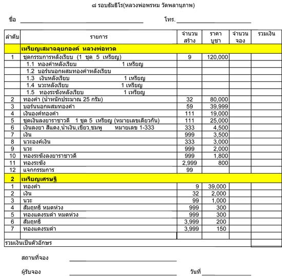 เนื่องด้วยศูนย์พระเครื่องบ่อพันขัน ไอทีสแควร์ หลักสี่ ได้รับยอดมาเปิดจอง เหรียญ 8 รอบธัมมธีโร พ่อท่านพรหม วัดพลานุภาพ เนื่องจากมีผู้สั่งจองเป็นจำนวนมาก ทางศูนย์ฯ สรุปตัวเลข ณ.วันนี้ที่ทางผู้จัดสร้างจัดยอดมาให้ ยอดจองเกินเกือบทุกรายการ และทางศูนย์ได้ติดต่อขอยอดจากทางผู้จัดสร้างเพิ่มเติม แต่ทางผู้จัดสร้างไม่สามารถเพิ่มยอดให้ได้เพราะยอดที่ทางผู้สร้างก็หมดทุกรายการเหมือนกัน ทางศูนย์จึงขอประกาศรับซื้อใบจอง พระรุ่น 8 รอบธัมมธีโร พ่อท่านพรหม วัดพลานุ ในราคาบวกจากใบจอง 10 % ทุกรายการ ด่วน ๆ ๆ .....โทร 084-4355519 |