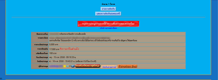ในรายการประมูล สมาชิกเขียนข้อความว่า