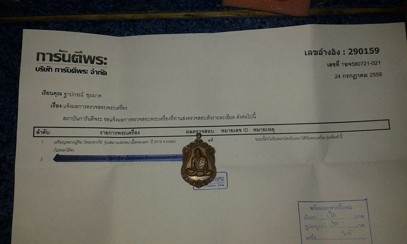 ผมส่งพระหลวงปู่ทิม วัดละหารไร่ รุ่น เสมา 8 รอบ เนื้อทองแดงปี 2518 ไม่ตอกโค๊ต ส่งวันที่ 24 กรกฏาคม 2558 ผลตรวจ สอบออกพระแท้ พอผมมาตั้งประมูล ปี59 ผู้ ชนะประมูล ขอออกบัตรใหม่ ผลออก ไม่สรุปผล 1 องค์ ทางสถาบันฯ ยังไม่มีข้อมูลอ้างอิงมาตรฐาน สำหรับพระไม่ตอกโค้ดของรุ่นนี้ อยากให้เว็ปชี้แจ้งหน่อยครับว่าผลตรวจสอบ ทำไมไม่เหมือนกัน ขอบคุณครับ |