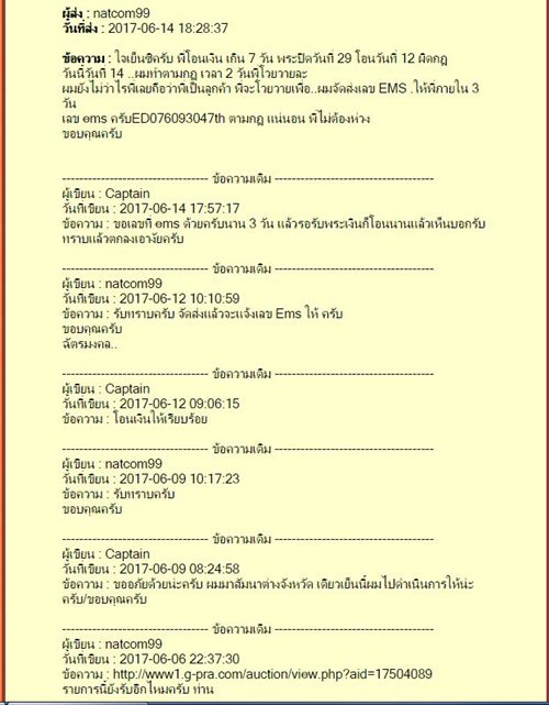 พอดีพี่เขาปิดพระไปวันที่ 29 เดือนที่แล้ว พึ่งโอนเงินมา วันที่ 12 เดือนนี้ ผมเมล์ไปก็ไม่อ่าน ต้องโทรถาม ผมก็ไม่คิดอะไรคิดว่าเป็นลูกค้า ผลัดเป็นอีก จากวันอาทิทย์ เป็นวันจันทร แจ้งโอนเงินผมวันที่ 12 ผมพึ่งส่งให้วันที่ 14 กำลังจะเมล์ไปบอก พี่แกโวยวายว่าโอนหลายวันแล้ว