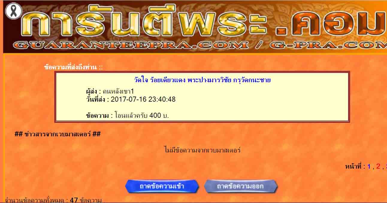 ปิดประมูลแล้ว โอนเงินเลย รับพระแล้วเห็นองค์จริงไม่ชอบใจ แจ้งคืนพระตามกฎรับประกันความพอใจในวันที่รับ ส่งคืนไปและผู้ตั้งประมูลได้รับพระแล้ว กลับไม่โอนเงินคืน โทรไปก็บอกจะโอน แต่ก็ไม่โอน โทรจนเบื่ิอ รอมาเดือนกว่าแล้ว แจ้งเวปไป เวปก็เงียบ ไม่ตอบอะไร เราต้องเสียตังฟรีหรือเปล่า ใครเคยโดนแบบนี้บ้าง |