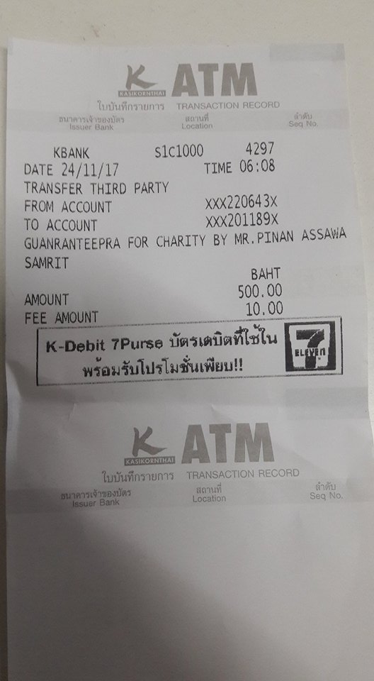 **ชำระค่าปรับเพื่อการกุศล 500 เมื่อวันที่ 24/11/2560**