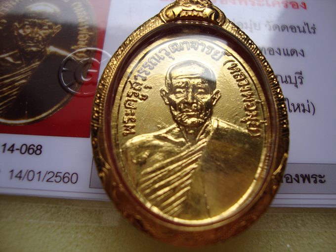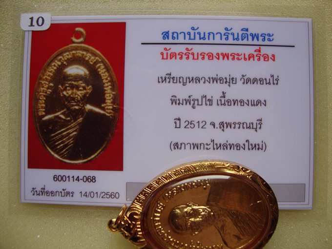 *** เหรียญหลวงพ่อมุ่ย วัดดอนไร่ พิมพ์รูปไข่ เนื้อทองแดง ปี 2512 จ.สุพรรณบุรี (สภาพกะไหล่ทองใหม่)(600114-068) (G 0%)***