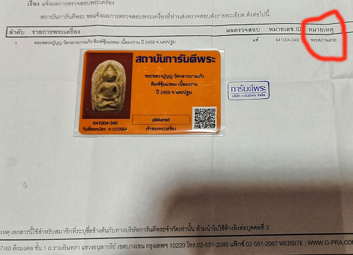 ผมชนะประมูลพระรายการนึงและแจ้งออกบัตร ผลออกมาสนง ระบุว่า พระสภาพสวย