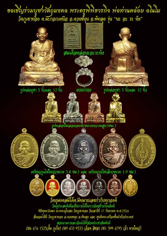 | หัวข้อกระทู้ : => แจ้งรายละเอียดการรับพระ พ่อท่านคล้อย อโนโม ที่ระลึกอายุครบ ๗ รอบ รุ่น นะอะระหัง......... |