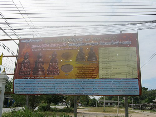 เริ่มจากป้ายประชาสัมพันธ์ทางแยกจากถนนหลักแยกเข้าวัด