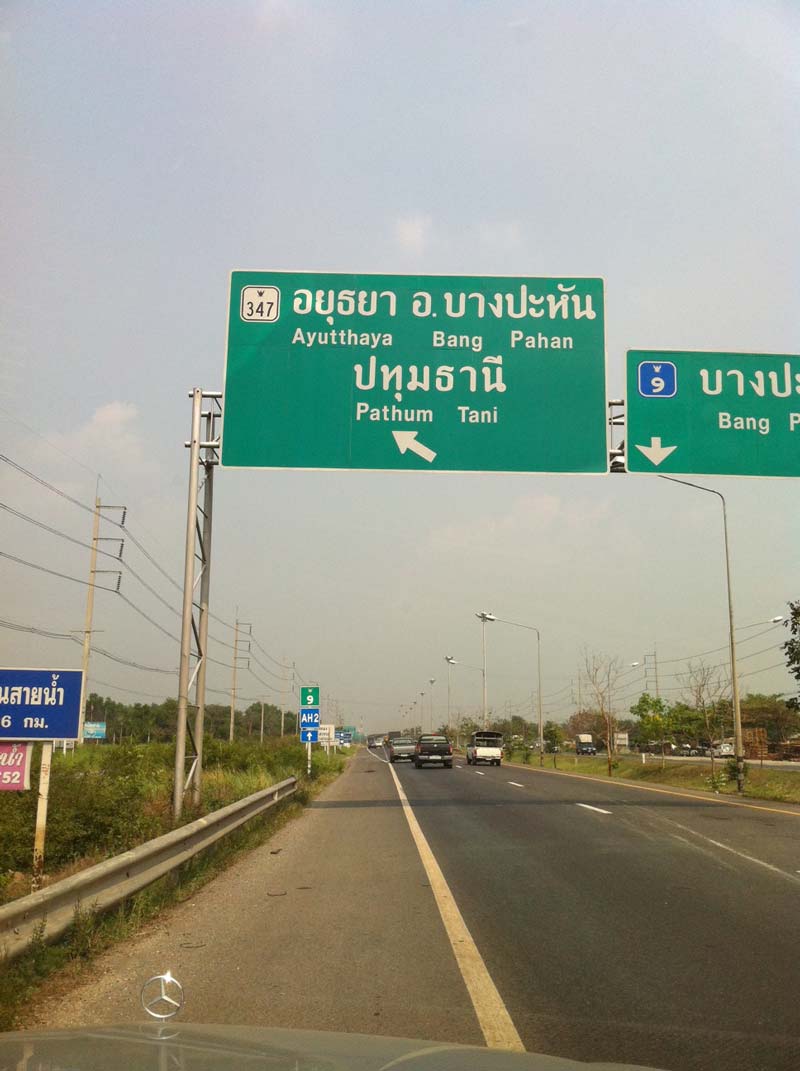 ผมขอเริ่มจากขี้นทางด่วนแล้ววิ่งไปทางเส้นงามวงศ์วาน จะมีด่านเก็บค่าผ่านทางอีก 10 บาทแล้วตรงไปทางเส้นแจ้งวัฒนะ แล้วต่อไปที่ด่านบางปะอินเลยครับ ซึ่งเมื่อจะลงที่ด่านบางปะอินนั้นจะมีด่านเก็บค่าผ่านทางเพิ่มอีก (ถ้าจำไม่ผิดก็จะเป็น 25 หรือ 35 บาท) ซึ่งก็ให้ชิดขวาไว้เพื่อไปทางบางปะอิน (จะเป็นทางโค้งขวาแบบเกือบๆ ยูเทิร์นได้เลย) อย่าไปทางซ้าย "บางไทร" นะครับ เพราะต้องไปกลับรถอีกครั้งเดี๋ยวจะงง