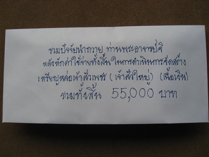 นำขึ้นถวายพระอาจารย์จิ เพื่อเป็นค่าใช้จ่ายในการจัดงานไหว้ครู ประจำปี 2555