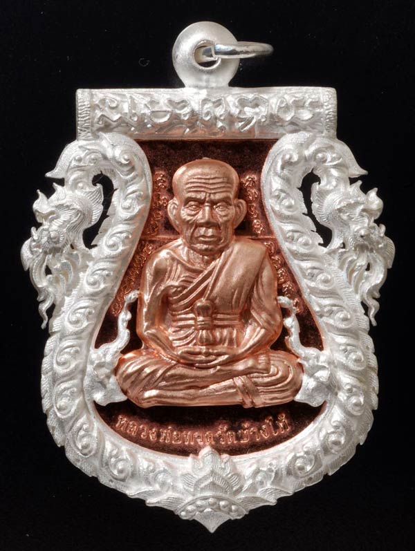 เนื้อนวโลหะซุ้มพญานาคเงิน หลังฝังตะกรุดทองคำแท้ 99.99%