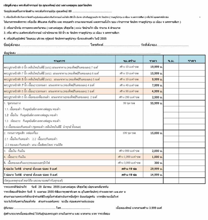 พระบูชาหน้าตัก 7 นิ้ว เทดินไทยในพิธี (นวะ) แถมแจกทาน (ทองทิพย์ก้นทองแดง) 6 องค์ สร้าง 19 องค์ ๆละ 15,999 บ.