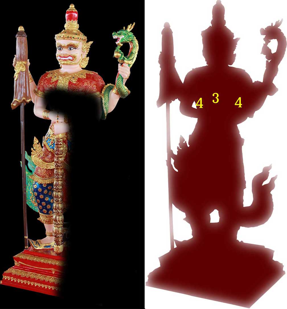 จากรูปผมทำกราฟฟิกให้ดูกันเปรียบเทียบตำแหน่งของวิเศษอันดับที่ 3 และ 4 ในรูปแรเงา กับ รูปจริง