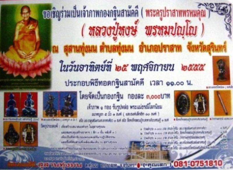 หัวข้อกระทู้ : แจ้งข่าวงานบุญ ทอดกฐินสามัคคี หลวงปู่หงษ์ พรหมปัญโญ ปี๕๕