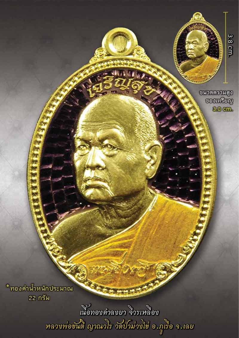ขอเริ่มกันที่เนื้อทองคำลงยาครับ จะเป็นลงยาสีม่วง สอดคล้องกับชื่อวัดป่า "ม่วง" ไข่ครับ และลงยาจีวรเหลือง สวยงามมากครับ น้ำหนักประมาณ 22 กรัม (บาทกว่าๆ)มาเป็นชุดครับสวยและคุ้มค่ามากครับ  |