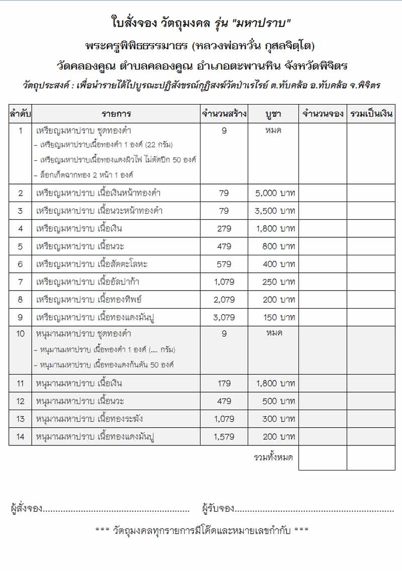 รายการจองทั่วไป หลวงพ่อหวั่น วัดคลองคูณ รุ่น "มหาปราบ" มาแล้วครับ !!!