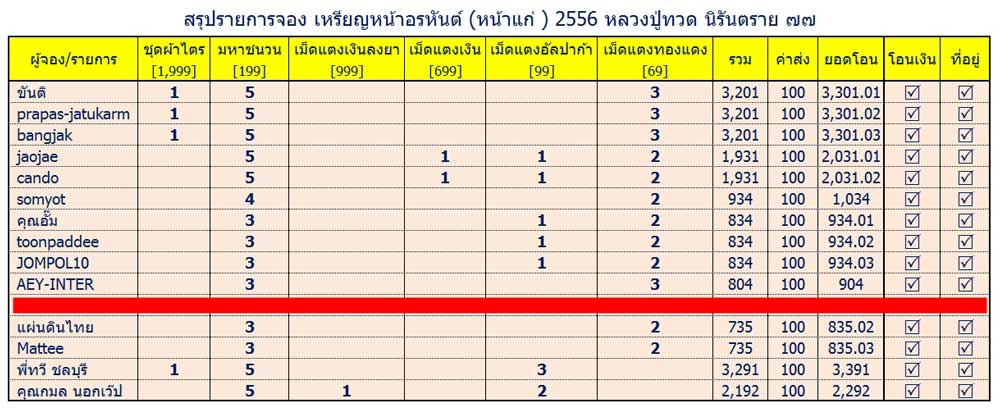 พิธีสุดท้าย 28/6/56 นี้ ต้นสัปดาห์หน้าผมคงได้รับพระแล้ว หลังจากนั้นจะกระจายส่งต่อไปยังผู้ที่สั่งจองไว้ทันทีครับ ไม่เกิน 1 วัน หลังจากได้รับพระ