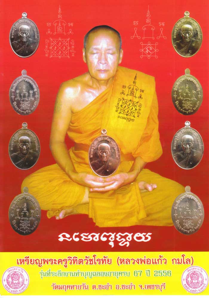 ...ในปี 2556 หลวงพ่อแก้ว ท่านมีอายุครบ 67 ปีเต็ม จึงได้จัดสร้างเหรียญเป็นที่ระลึกงานทำบุญฉลองอายุขึ้น เพื่อบูรณะศาลาการเปรียญ วัดมฤคทายวัน อ.ชะอำ จ.เพชรบุรี...