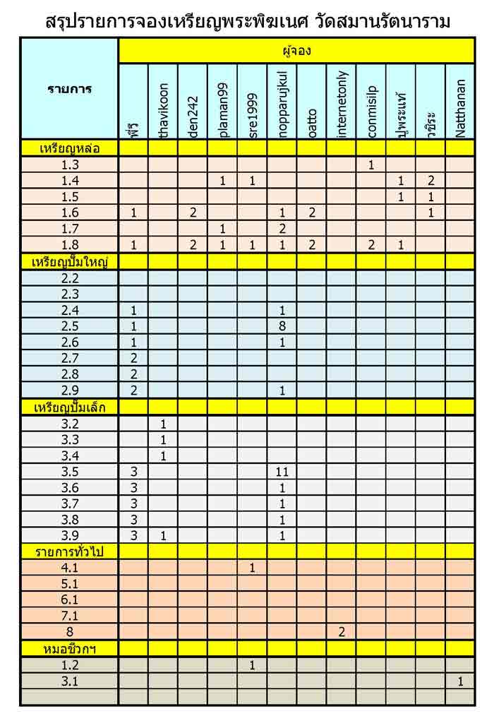 และจากการจองทั้งหมดสรุปรายการจองในแต่ละรายการของแต่ละท่านที่สั่งจอง ตอนเปิดจองผมจัดเป็นชุดครับ อาจดูยากว่ามีรายการอะไรบ้าง จึงได้สรุปออกมาเป็นแต่ละรายการ ดังต่อไปนี้ครับ