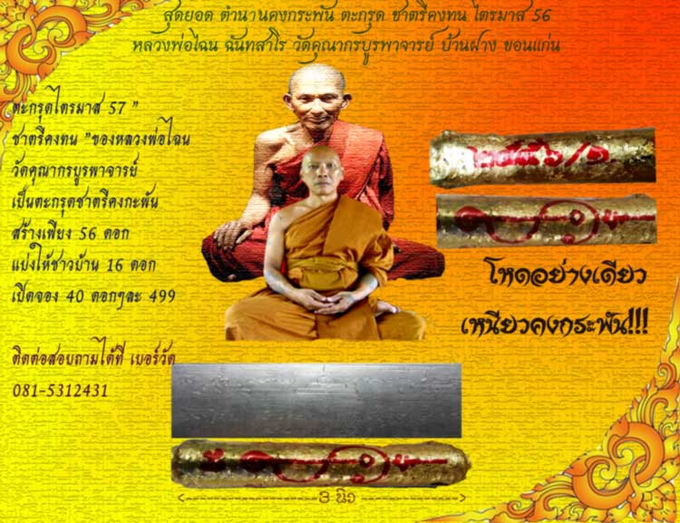 | หัวข้อกระทู้ : เปิดจองตะกรุด นะชาตรีคงทน หลวงพ่อไฉน วัดคุณากรบูรพาจารย์ ขอนแก่น ยอดเพียง 16 ดอกเท่านั้นจร้า |