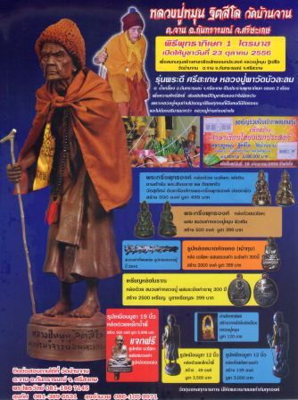 ยังไม่รับจอง สามารถบูชาได้ที่วัดบ้านจาน หลังวันที่ 23 ตุลาคม 2556 เท่านั้น หรือโทรถามที่ 0891466305 หลังวันที่ 23 ตุลาคม 2556 เท่านั้นครับ