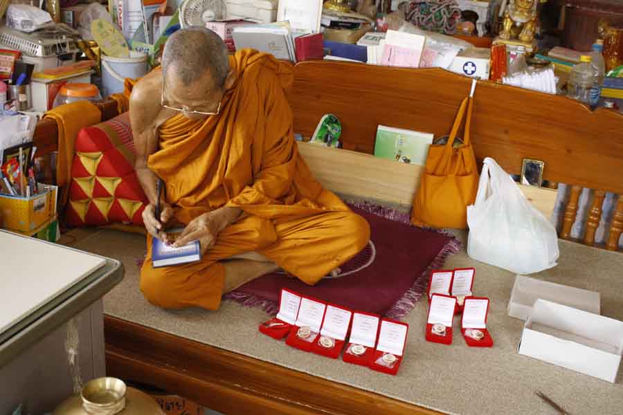 พิธีปลุกเสกเหรียญหลวงปู่ทวดสร้างเจดีย์ศรีเกษม ณ โบสถ์วัดขนาย 5/10/56 โดยหลวงพ่อล้าน เขมจิตโต พร้อมทำบล็อกและโค๊ตต่อหน้าหลวงพ่อล้าน...