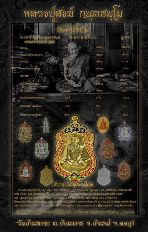 ขออนุญาติประชาสัมพันธ์ เปิดจองเหรียญเสมา มหาเศรษฐี หลวงปู่สงฆ์ วัดบ้านทราย เหรียญจะมีพิธีพุทธาภิเษกในวันที่ 15 ธันวาคม 2556 ณ วัดบ้านทราย ต.บ้านทราย อ.บ้านหมี่ จ.ลพบุรี ท่านใดที่สนใจสั่งจอง เหรียญเสมา มหาเศรษฐี สั่งจองได้ที่ผมได้โดยตรงครับ โทร 086-1315739 หรือตามศูนย์ที่รับจองได้ทุกที่ครับ ปิดจองวันที่ 8 ธันวาคม 2556 รายละเอียดเพิ่มเติมจะทะยอยลงมาให้ทราบเรื่อยๆครับ แบบเหรียญยังไม่ครบ จะนำมาลงให้ชมเพิ่มเติมเรื่อยๆ ครับ ขอบคุณครับ วันพิธีพุทธาภิเษก มีพิธีสะเดาะเคราะห์ และรับของแจกพิเศษของหลวงปู่สงฆ์ฟรีครับ ขอให้ทุกท่านจงพบแต่ความสุข ความเจริญ โชคดี ตลอดไปครับ |