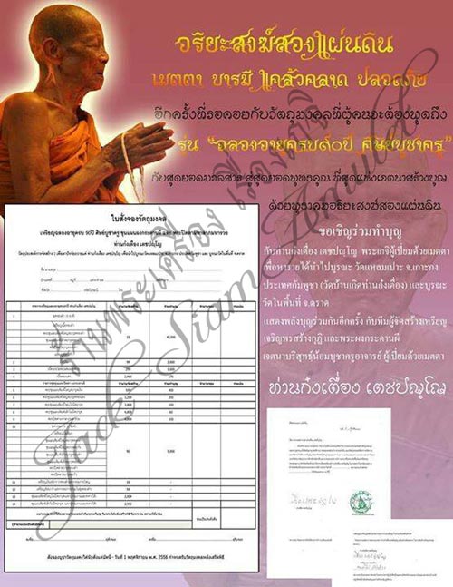 วัตถุประสงค์ : เพื่อหารายได้นำไปบูรณะ วัดแหลมเปาะ จ.เกาะกง ประเทศกัมพูชา (วัดบ้านเกิดท่านก๋งเตื่อง) และบูรณะวัดในพื้นที่ จ.ตราด