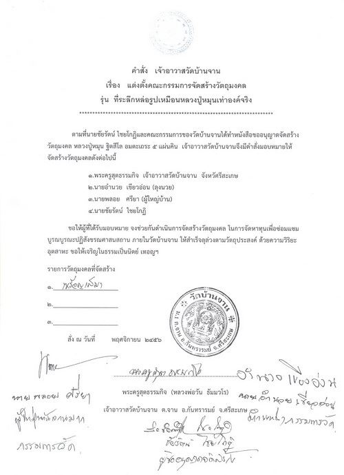 ครั้งที่ 1 วันที่ 12 ธันวาคม 2556 ณ.อุโบสถ วัดบ้านจาน โดยหลวงปู่พา วัดบัวละลม ต.น้ำเกลี้ยง อ.กันทรารมณ์ จ.ศรีสะเกษ อธิษฐานจิต