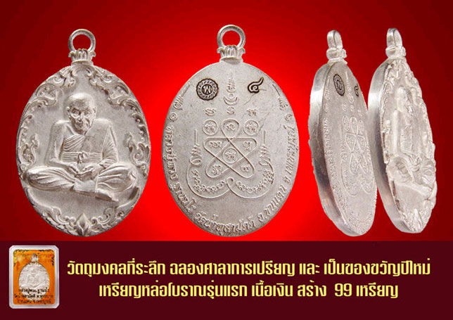 ครั้งนี้ครั้งแรก! ของการสร้างเหรียญเต็มองค์ หลวงปู่พวง จัดสร้างตามแบบฉบับโบราณเอกลักษณ์ที่ไม่มีใครเหมือน ด้านหลังหลวงปู่พวงเมตตาให้ใส่ยันต์เพชรกลับ เพื่อหนุนดวงส่งเสริมป้องกันแคล้วคลาดชาตรีนิรันตรายแก่ผู้ที่ได้นำไปใช้ เหรียญหล่อ รุ่นแรกได้ทำการเททองหล่อในวันเสาร์ ๕ เป็นวันที่แข็งที่สุดเหมาะต่อการหล่อพระเสกพระ ทำให้ยิ่งศักดิ์สิทธิ์เป็นทวีคูณ รวมกับชนวนมวลสารที่หายากมากกว่า ๑,๙๙๙ ชนิดหลอมรวมกันได้ยากนัก หลายอย่างหลอมอย่างไรก็ไม่ละลาย พอเอาน้ำมนต์หลวงปู่พวงราดเข้าไป ละลายหมดไม่เหลือ ! เมื่อมวลสารเข้ากันได้ยากจึงทำให้แต่ละเหรียญขาดความสวยงามแบบสมัยใหม่ไป แต่งดงามในทางศิลปะและความโบราณเข้ามา หลังจากนั้นหลวงปู่พวง ได้นำมาปลุกเสกเดี่ยวตลอด 10 วัน 10 คืน จากนั้นจึงได้ให้นำออกให้บูชาในวันที่ 1 มกราคม 2557 ต้อนรับปีใหม่พอดิบพอดี หลวงปู่พวงบอกว่า ปลุกเสกเต็มอัตราทำแบบนี้คงไม่มีอีกแล้ว เหรียญนี้มีดีนอกและดีใน เพราะลงจนหมดทำให้เต็มเปี่ยมแล้ว จำนวนการจัดสร้าง เนื้อเงินสร้าง 99 บูชา 2,500 บาท เนื้อนวะสร้าง 999 บูชา 800 บาท เนื้อสำฤทธิ์โบราณสร้าง 1,999 บูชา 400 บาท เนื้อรวมมวลสารสร้าง 1,999 เหรียญบูชา 300 บาท เนื้อสังขวานรสร้าง 199 เหรียญเพื่อแจกคณะกรรมการผู้ช่วยงาน